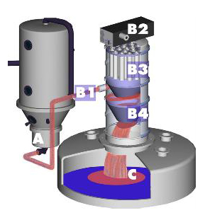 氣動(dòng)真空輸送設(shè)備是采用壓縮空氣作為動(dòng)力源產(chǎn)生負(fù)壓實(shí)現(xiàn)對各種物料的輸送,其不需要機(jī)械式真空泵,具有結(jié)構(gòu)簡單、體積小、免維修、噪音低、控制方便、消除物料靜電和符合GMP要求等優(yōu)點(diǎn)。真空發(fā)生器產(chǎn)生的高真空,使被輸送的物料杜絕了分層現(xiàn)象,保證了混合物料成分的均一性,是壓片機(jī)、混合機(jī)、填充機(jī)、干法制粒機(jī)、包裝機(jī)、粉碎機(jī)、振動(dòng)篩及反應(yīng)釜等設(shè)備自動(dòng)上料的使用設(shè)備。 工作原理: 真空輸送設(shè)備在真空下形成一股氣流,在這種氣流作用下被輸送的物料瞬間通過吸料的軟管或管子將散裝物料輸送到另一個(gè)容器中。由于物料在輸送過程中始終處于真空狀態(tài),因此,即使發(fā)生輸送管道發(fā)生泄漏,物料也不會(huì)泄入到周圍的環(huán)境中。 其工作方式:1、氣動(dòng)控制器控制真空泵B2啟動(dòng),在分離倉內(nèi)產(chǎn)生真空,迅速將空氣和物料從A(進(jìn)料位置),經(jīng)軟管或管子從B1(吸料口)進(jìn)入到B4(真空輸送設(shè)備)中,從而達(dá)到輸送物 料的目的。2、分離倉內(nèi)依靠B3(過濾倉濾芯)把空氣與物料分離,被輸送的散裝物料保留和收集在分離倉內(nèi)。當(dāng)輸送細(xì)小粉塵時(shí),其特有的旋風(fēng)集塵器可起到很好的效果。3、氣動(dòng)控制器控制真空泵B2關(guān)閉時(shí),輸送器內(nèi)的壓力達(dá)到平衡,物料經(jīng)出料倉B4輸送到料倉C的位置。4、出料時(shí),氣動(dòng)控制器自動(dòng)控制反沖氣囊吹掃過濾倉濾芯,使其可被清洗再生使用。輸送粘稠物料時(shí),可選用活塞振動(dòng)器等助流器來提高出料效率。5、最后控制出料艙關(guān)閉,整個(gè)輸送流程再次啟動(dòng)。